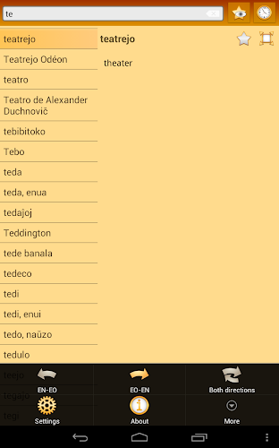 Toto je angličtina - Esperanto a Esperanto - anglický slovník; Angla - Esperanto Kaj Esperanto - Angla Vortaro. Aplikace funguje offline a nepotřebuje připojení k internetu.databáze bude stažena, když je aplikace spuštěna poprvé. Doporučujeme používat připojení Wi-Fi.