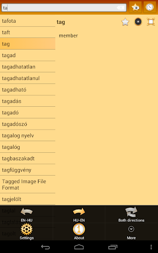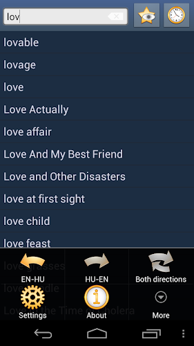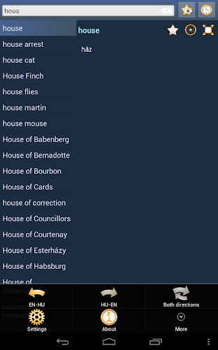 toto je anglicko - maďarský a maďarsko - anglický slovník; angol - magyar és magyar - angol szótár. aplikace funguje offline a nepotřebuje připojení k internetu.databáze se stáhne při prvním spuštění aplikace. doporučujeme používat připojení wi-fi.