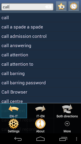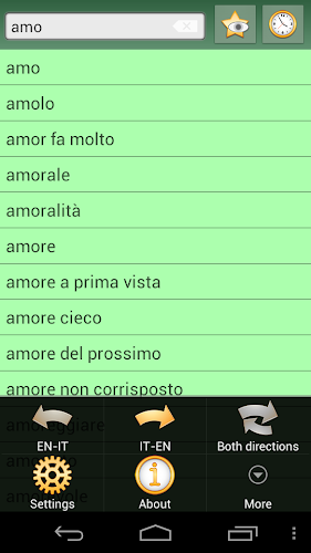 Toto je angličtina - italská a italská - anglický slovník; Dizionario Inglese - Italiano E Italiano - Inglese. Aplikace funguje offline a nepotřebuje připojení k internetu.databáze bude stažena, když je aplikace spuštěna poprvé. Doporučujeme používat připojení Wi-Fi.