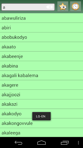 This is English Ganda Dictionary and Ganda English Dictionary (lungereza Ganda nkuluze yʼebigambo). The Dictionary is OFFLINE and does not need the internet connection.English Ganda Dictionary database will be downloaded when the application is run first time. We recommend you to use Wi-Fi connection.