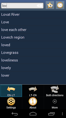 Toto je angličtina - litevská a litevská - anglický slovník; Anglų - lietuvių ir lietuvių - Anglų Židynas. Aplikace funguje offline a nepotřebuje připojení k internetu.databáze bude stažena, když je aplikace spuštěna poprvé. Doporučujeme používat připojení Wi-Fi.