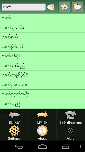 Toto je anglický barmský (Myanmar) slovník (အင်္ဂလိပ် ဗမာစာ အဘိဓာန်). Aplikace je offline a nepotřebuje připojení k internetu.databáze bude stažena po spuštění aplikace poprvé. Doporučujeme používat připojení Wi-Fi.