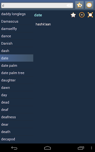 Toto je anglický Dictionary a Navajo English Dictionary (Bilagáaana Diné Lexike). Slovník je offline a nepotřebuje připojení k internetu.English Navajo Dictionary Database bude stažena po spuštění aplikace poprvé. Doporučujeme používat připojení Wi-Fi.