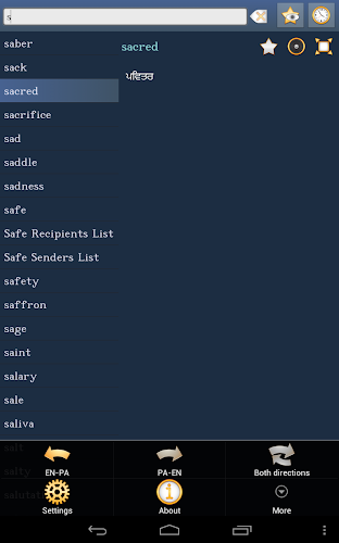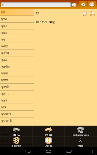toto je angličtina - punjabi a punjabi - anglický slovník; ਅੰਗਰੇਜ਼ੀ – ਪੰਜਾਬੀ ਹੈ ਅਤੇ ਪੰਜਾਬੀ – ਅੰਗਰੇਗਰਬੀ ਸ਼ਬਦ-ਕੋਸ਼. aplikace funguje offline a nepotřebuje připojení k internetu.databáze se stáhne při prvním spuštění aplikace. doporučujeme používat připojení wi-fi.