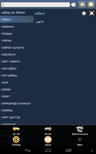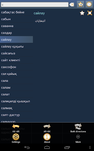 This is Kazakh Arabic Dictionary (Казахско-Арабский и Арабско-Казахский словарь (عربی-قزاقستان و قزاقستان-عربی فرهنگ لغت). The Application is OFFLINE and does not need the internet connection.Database will be downloaded when the application is run first time. We recommend you to use Wi-Fi connection.