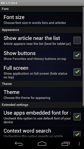 4. Různá nastavení - můžete změnit písmo a téma aplikace (vyberte jedno z několika barevných témat).