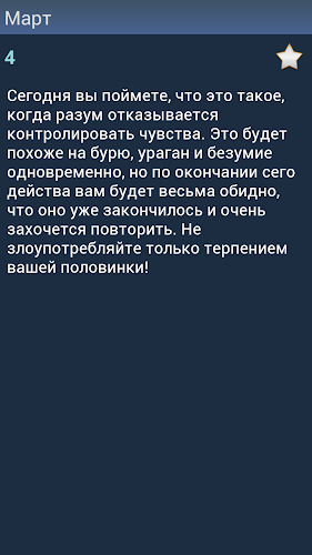 Любовный гороскоп водолей – приложение, которое поможет вам улучшить отношения со своей второй половинкой. Установив "Любовный гороскоп водолей", вы будете ежедневно получать важные советы и рекомендации по сохранению любви и улучшению семейных отношений. Ежедневный любовный гороскоп для водолеев в вашем телефоне – это быстрый и удобный способ в любом месте получить подсказку по выстраиванию отношений с вашей любовью.Ежедневный любовный гороскоп для водолеев составлен на 2019 год. Просто запустите приложение "Любовный гороскоп водолей", выберите текущий месяц и день и вы моментально получите ваш гороскоп, который поможет вам провести день с пользой!