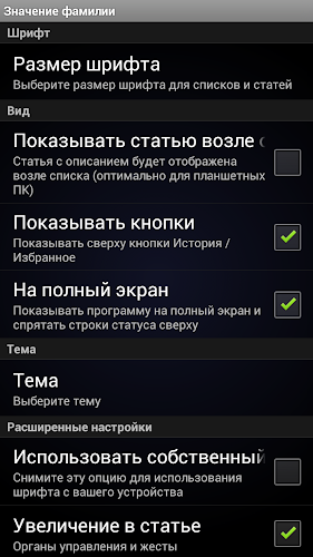 Внимание! При первом запуске приложения необходимо будет скачать базу данных со всеми фамилиями. Рекомендуется скачивать на карту памяти через Wi-Fi.