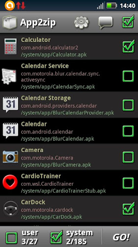 App2Zip umožňuje zálohování aplikací přímo na soubor zip, který lze zaútočit na vlastní zotavení. Můžete také vybrat systémové aplikace)
