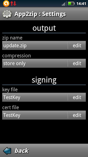 Toto je pro/darovaná verze App2Zip, jsou zahrnuty další funkce (Nastavení výstupu). je ve velmi rané fázi, nefunguje na některých zařízeních, proto nejprve proveďte test, abyste zjistili, zda to pro vás funguje (např. Zálohování aplikace, která vám moc nezajímá, odinstalujte ji a obnovte zpět prostřednictvím CWM Recovery). Použijte na vlastní riziko!-------------------------------