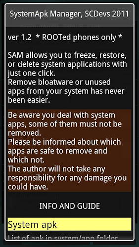 SAM is a tool which allows you to freeze, restore, or delete system applications with just one click.* ROOT REQUIRED *Fast and useful when you need to remove (temporarily or permanently) preinstalled apps that normally can not be uninstalled.Also...