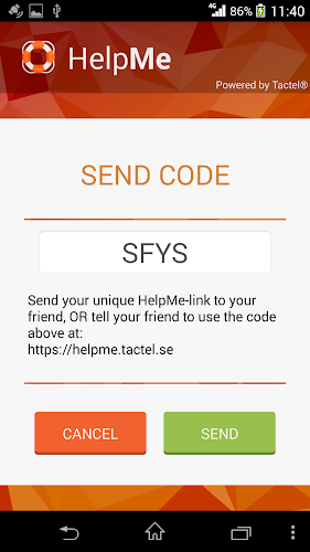 helpme je přítel v nouzi, když chcete pomoci s telefonem- nebo, když chcete pomoci někomu jinému. Osoba, která se chystá vám pomoci, může buď kliknout na odkaz nebo zadat kód ručně na http://helpme.tactel.sevoilà- váš pomocník může nyní: