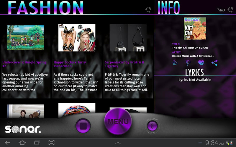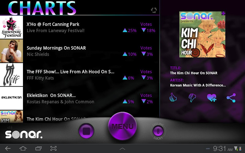 Jsme sonar ... milujeme hudbu ...Hrajeme věci, které chcete slyšet, a všechno, co musíte slyšet. Hudba, kterou nikdy nenajdete na komerčních stanicích s DJs, kteří jsou naprosto fanatičtí ohledně sdílení s vámi. Je to také váš odkaz na nejnovější informace o vašem životním stylu. Prozatím se k nám připojte na dobrodružství a objevte Sonar. Stáhněte si aplikaci pro vaše Android, Galaxy S, Galaxy Tab nebo Bada Phone a prostě jděte s tokem ... nebo jednoduše poslouchejte Sonar na Facebooku pomocí našich flash přehrávačů (můžete ji dokonce oddělit, abyste ji mohli hrát na pozadí).