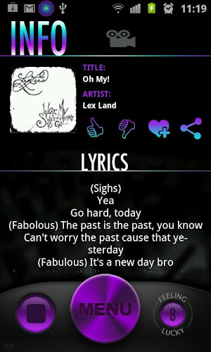 Dotkněte se umění alba a najdete řadu dalších funkcí od sdílení kanálu se svými přáteli přes vaše kanály Twitter a Facebook po hodnocení aktuální písně, jejích textů a pokud je k dispozici, vids také. Můžete si dokonce vytvořit svůj vlastní oblíbený seznam písní z našeho seznamu skladeb pod „oblíbenými“ (duhhh ....)