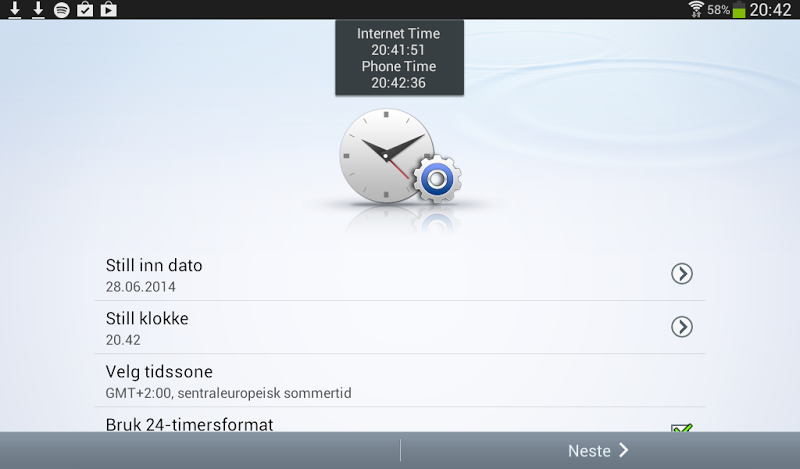 Internet čas se zobrazí živě, zatímco upravujete nastavení času telefonu. .
