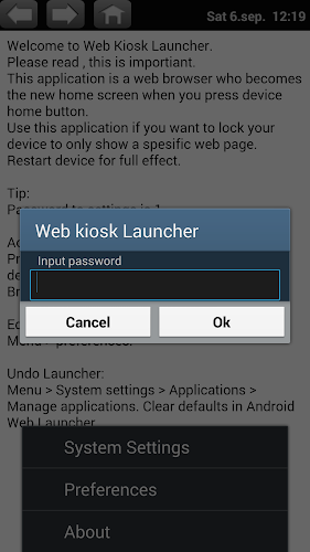 Analýza A Revize Aplikací Pro Android: Web Kiosk Launcher, Vyvinuté Společností Skjold Display. Uvedeno V Kategorii Komunikace. Aktuální Verze Je 1.1, Aktualizována Na 06/09/2014 . Podle Recenzí Uživatelů Na Google Play: Web Kiosk Launcher. Dosaženo Více Než 3 Tisíc Instalací. Web Kiosk Launcher Má V Současné Době Recenze 7, Průměrné Hodnocení 3.6 Hvězd
