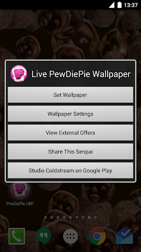 Analýza A Revize Aplikací Pro Android: Live PewDiePie Wallpaper, Vyvinuté Společností Studio Coldstream. Uvedeno V Kategorii Personalizace. Aktuální Verze Je 1.0.8, Aktualizována Na 25/07/2015 . Podle Recenzí Uživatelů Na Google Play: Live PewDiePie Wallpaper. Dosaženo Více Než 100 Tisíc Instalací. Live PewDiePie Wallpaper Má V Současné Době Recenze 3 Tisíc, Průměrné Hodnocení 4.4 Hvězd