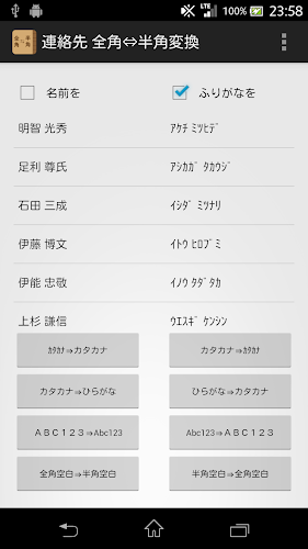 Tato aplikace poskytuje v plné šířce ⇔ přeměnu poloviční šířky ve velkém pro názvy knih adres a Furigana.Pokud jste si to někdy mysleli, je to určitě užitečné.