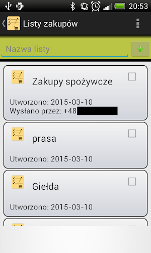 Kromě toho, když nakupování v seznamu odeslaných SMS přijde do telefonu vašeho příjemce, zobrazí se oznámení o novém seznamu, pro který můžete dále nakonfigurovat a vibrace dźwięk.aplikacja mimo funkci vytváření a odesílání nakupování mimo funkci vytváření a odesílání nakupování Seznamy také podporují stejné nakupování.