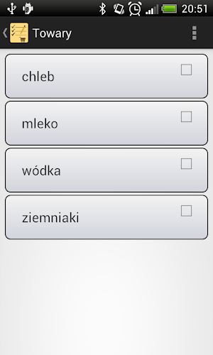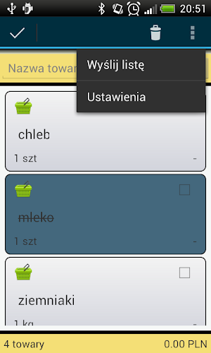 Pro verze aplikace vám umožňuje přenést celý dopis a nezobrazuje funkčnost Reklam.Lista:- Vytvářejte seznamy Zakupów- Ukládání zboží vstupujícího a výzvy k vytvoření nowych-uploadové nákupní seznamy ve formě textových zpráv mezi telefony S nainstalovanou aplikací- Stanovení seznamu “, jak je zakoupeno”- Úvod