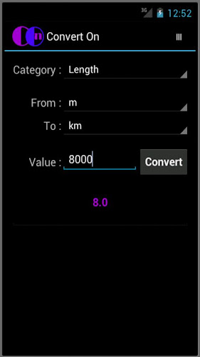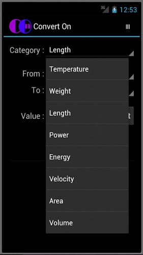 Převod je aplikace pro výpočet převodu hodnoty z dostupných kategorií je:1. teplota,