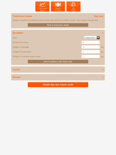 Wise up on Waste is a convenient tool for professional kitchens to monitor and track food waste to help operators identify when and where the most food waste is being generated and where they can save money.By simply sorting your waste bins into spoilage (unusable stock), preparation (generated as part of the cooking process) and customer plate waste (returned on plate from guests) and weighing them at the end of each service (breakfast, lunch and/or dinner). The weights you enter over a three day audit period will enable the app to tell you your average waste generated per day, per cover, per service period.
