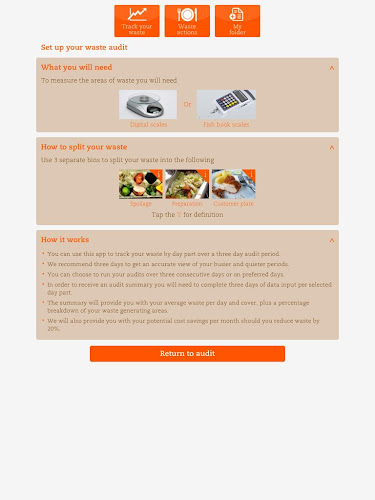 The app will identify where you are generating more waste than the industry average and how much money you could save per week by reducing your waste by 20%.