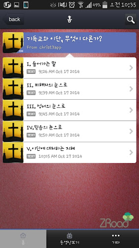Co se liší od křesťanství a kacířství? Zroud Korea vytvořila sérii křesťanských aplikací k vyřešení zvědavosti křesťanů, jako je například to, zda není nic, co by do Bible přidalo, která nezdůrazňuje, že se objevila jménem Ježíše, tvrdí, že je spasení pouze ve vaší církvi. a poskytuje extrémní eschatologii. Můžete vidět přednášky a související materiály profesora Takjiila. „Evangelizace“ je vize Zroud Korea. Zostrová Korea, křesťanství, doktrína, náboženské dogma, Ježíš, Bůh, JMS, Heresy, Cult------------ Timedia Center 8. patro Girod Korea
