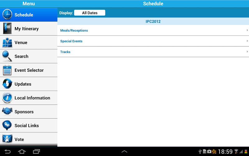 Plánovač itineráře ASME vám umožňuje naplánovat svůj denní rozvrh na místě pro konferenci ASME o vašem mobilním zařízení. Naplánujte si technické sezení, schůzky výborů, večeře událostí a další možnosti. Zobrazit informace o místě konání a mapy hotelů bez potíží s nosnými mapami nebo papíry.ASME Conferences obsahuje relace, papíry a plakátové sezení prezentované na nejnovějším výzkumu v oboru inženýrství a strojního inženýrství. Organizátoři událostí mohou použít plánovač itineráře ASME k poskytování oznámení a bulletinů na celé konferenci spolu se změnami pokojů a dalšími aktualizacemi.