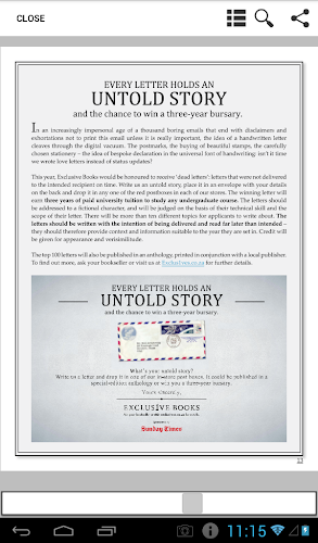 Analýza A Revize Aplikací Pro Android: Exclus1ve Books Cover to Cover, Vyvinuté Společností Snapplify. Uvedeno V Kategorii Knihy A Referenční Materiály. Aktuální Verze Je 2.1.7, Aktualizována Na 21/10/2017 . Podle Recenzí Uživatelů Na Google Play: Exclus1ve Books Cover to Cover. Dosaženo Více Než 1,000 Instalací. Exclus1ve Books Cover to Cover Má V Současné Době Recenze 14, Průměrné Hodnocení 2.8 Hvězd