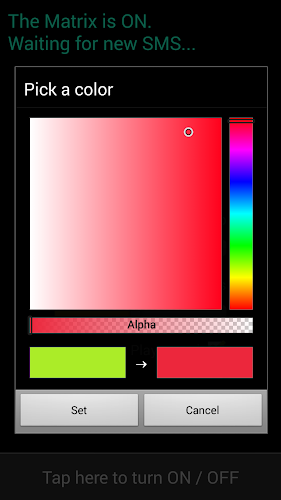 "Wake up, Neo...The Matrix has you..." Full screen SMS popup in matrix style.