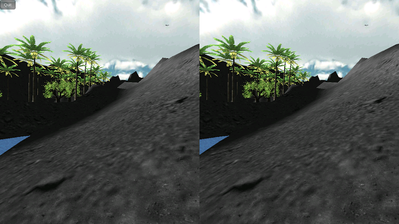 Dette er min første virtual reality app til alle former for Virtual Reality headsets.Gå rundt inde i en vulkan landskab ....