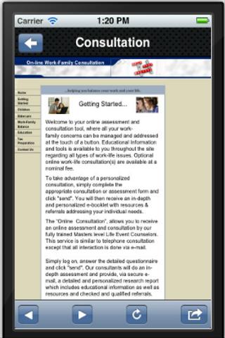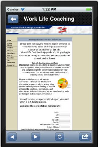 The Work-Life Balance Mobile App helps you balance their work and personal lives by providing them quick and easy access to quality consultation, information and resources. All which can be accessed can accessed on your mobile phone, smartphone, iPad or laptop.