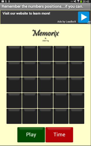 Hallo zusammen, willkommen bei Memorix von Stefan EngWenn Sie auf „Play“ drücken, beginnt das Spiel mit drei Zahlen, 1 bis 3, die jeweils in einem der schwarzen Quadrate angezeigt werden.