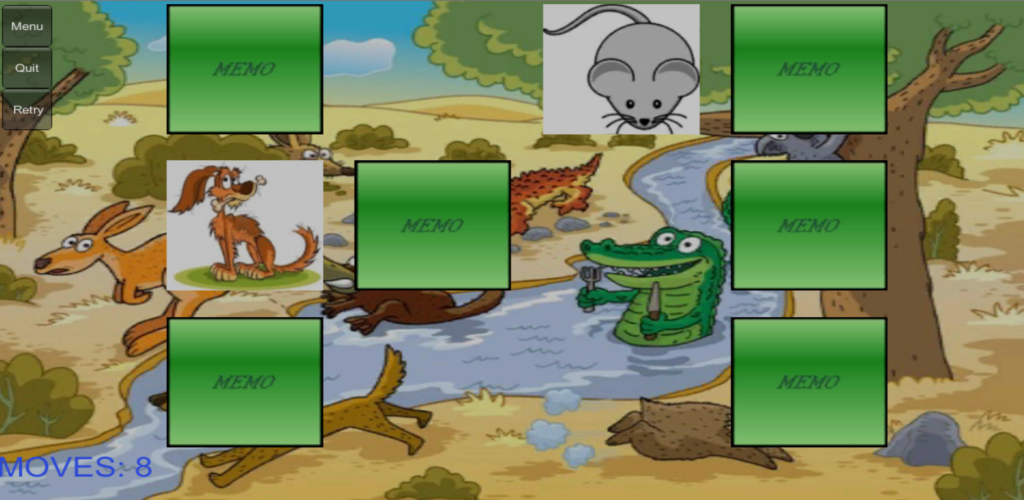 Das beliebte Kartenspiel der entsprechenden Paare. Sie sollten es in der geringsten Anzahl von Bewegungen tun.Eine Auswahl von 8 Kategorien von Karten: