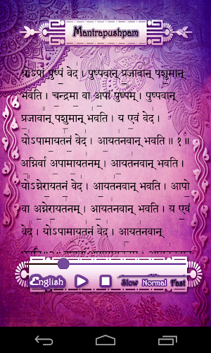 Our app makes the above procedure so simple in providing you the mantras in 2 languages – English and Sanskrit with audio enabled. The text gets auto scrolled as you