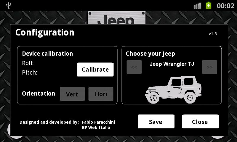 Jeep Κλισιόμετρο είναι μια κλισιόμετρου εκτός δρόμου που σχεδιάστηκε από τους λάτρεις της Jeep για τους λάτρεις της Jeep για τη μέτρηση της γωνίας Jeep σας από pitch and roll, ενώ εγχειρήματα offroad. Απλά βαθμονόμηση του App, ενώ στο αυτοκίνητο mount για το κινητό σας τηλέφωνο ή συσκευή. Στη συνέχεια, μπορείτε να το χρησιμοποιήσετε ως ένα μετρητή κλίσης όπου κι αν πάτε.Απαιτεί Adobe AIR για να τρέξει.