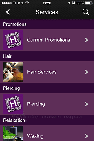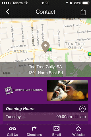 Το hunting hair and day spa βρίσκεται στο Tea tree Guly, στη Νότια Αυστραλία. Σας προσφέρουμε το πλήρες πακέτο υπηρεσιών μαλλιών και χαλάρωσης, που περιλαμβάνει κούρεμα, βαφή και αλουμινόχαρτα μέχρι αποτρίχωση με κερί, μαύρισμα με σπρέι, περιποίηση προσώπου, πεντικιούρ, μανικιούρ, εξτένσιον μαλλιών, μασάζ και συνδυαστικά πακέτα. Η άρτια εκπαιδευμένη και έμπειρη ομάδα μας έχει στόχο να απομακρύνει όλο το άγχος σας, ώστε να είστε απόλυτα χαλαροί όσο λαμβάνετε την υπηρεσία σας.κατεβάστε τη δωρεάν εφαρμογή μας για να διαβάσετε περισσότερα για εμάς και τις υπηρεσίες μας. μπορείτε επίσης να κάνετε κρατήσεις ή ερωτήσεις, να διαβάσετε και να αφήσετε κριτικές, να προβάλετε γκαλερί εικόνων, να μας στείλετε μια φωτογραφία για προτάσεις, να παρακολουθήσετε τα τελευταία μας ενδιαφέροντα γεγονότα και να ασχοληθείτε με τα μέσα κοινωνικής δικτύωσης όπως το facebook.