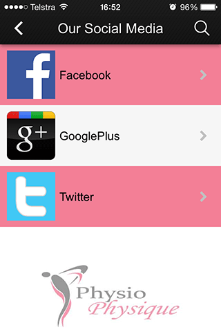 Το physio physique βρίσκεται στο pooraka της νότιας Αυστραλίας. παρέχουμε προσιτές και επαγγελματικές υπηρεσίες φυσιοθεραπείας/μασάζ για τη διαχείριση μυοσκελετικών παθήσεων και τραυματισμών. Το προσωπικό μας είναι υψηλά καταρτισμένο και έμπειρο και είναι παθιασμένο να βοηθά τους πελάτες του, ώστε να μπορείτε να είστε χωρίς πόνο και να βελτιώσετε την ποιότητα της ζωής σας. Στόχος μας είναι να ανακουφίσουμε τον πόνο σας και να παρέχουμε μακροπρόθεσμες λύσεις διαχείρισης.κατεβάστε τη δωρεάν εφαρμογή μας για να διαβάσετε περισσότερα για εμάς και τις υπηρεσίες μας. μπορείτε επίσης να κάνετε κρατήσεις ή ερωτήσεις, να διεκδικήσετε ανταμοιβές αφοσίωσης, να διαβάσετε και να αφήσετε κριτικές, να μας στείλετε μια φωτογραφία για συμβουλές άσκησης, να παρακολουθείτε και να παρακολουθείτε τις τελευταίες εκδηλώσεις ενδιαφέροντός μας και να αλληλεπιδράσετε με τα μέσα κοινωνικής δικτύωσης όπως το facebook, το twitter και το googleplus.