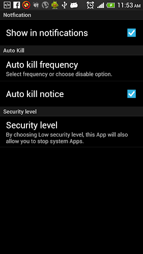 εάν θέλετε να σκοτώσετε εφαρμογές αυτόματα, πρέπει να επιλέξετε ένα από τα επίπεδα αυτόματης θανάτωσης