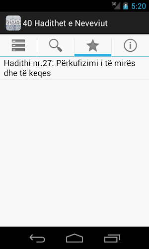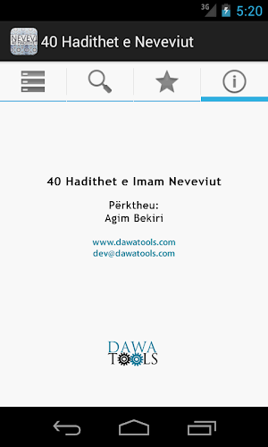 Ανάλυση Εφαρμογών Android: 40 Hadithet e Neveviut, Που Αναπτύχθηκε Από Το DawaTools. Που Αναφέρονται Στην Κατηγορία Βιβλία Και Αναφορές. Η Τρέχουσα Έκδοση Είναι 1.2, Ενημερωμένη Στις 17/02/2013 . Σύμφωνα Με Τις Αναθεωρήσεις Των Χρηστών Στο Google Play: 40 Hadithet e Neveviut. Επιτυγχάνονται Πάνω Από 30 Χίλια Εγκαταστάσεις. Το 40 Hadithet e Neveviut Έχει Σήμερα 343 Κριτικές, Μέση Βαθμολογία 4.8 Αστέρια