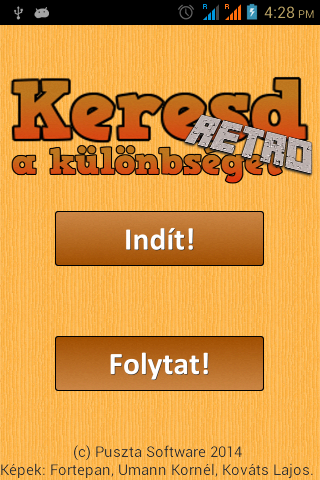 Ανάλυση Εφαρμογών Android: Hungarian differences retro game, Που Αναπτύχθηκε Από Το Puszta Software. Που Αναφέρονται Στην Κατηγορία Παιχνίδια Παζλ. Η Τρέχουσα Έκδοση Είναι 1.1, Ενημερωμένη Στις 12/03/2014 . Σύμφωνα Με Τις Αναθεωρήσεις Των Χρηστών Στο Google Play: Hungarian differences retro game. Επιτυγχάνονται Πάνω Από 1,000 Εγκαταστάσεις. Το Hungarian differences retro game Έχει Σήμερα 22 Κριτικές, Μέση Βαθμολογία 3.1 Αστέρια