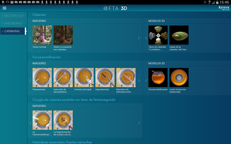 OFTA 3D es una app médica sobre oftalmología y sus diferentes patologías. Mediante la visualización de imágenes de alta calidad, vídeos y modelos 3D dota al médico de una herramienta excelente para ofrecer al paciente una mayor comprensión de su afección.