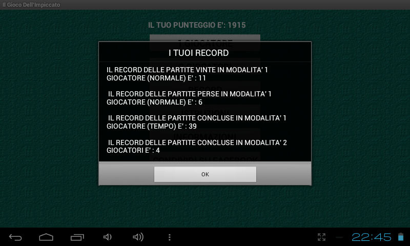 Con la aplicación del objetivo del "juego de hangman" del juego es encontrar la palabra para adivinar antes de que el dell'Impiccagione.ogni Game Won obtendrá una puntuación, cuanto más aumente su puntaje, los juegos de ganancia, se necesitanDesbloquee las diversas categorías. ¡Fun!