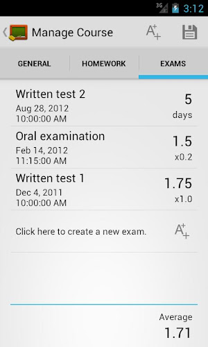 ★ Guardar tantos cursos, horarios de lección, tarea y calificaciones como desee; Los tiempos se pueden elegir libremente; Las calificaciones se pueden ponderar