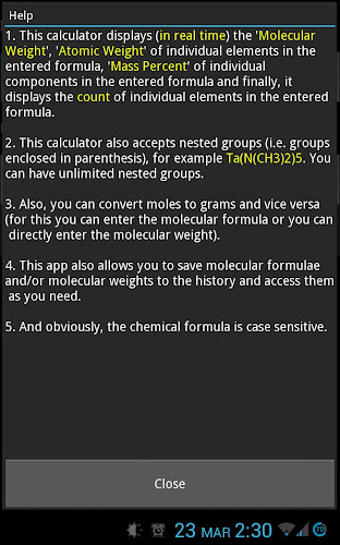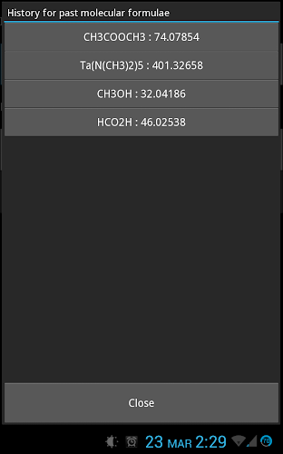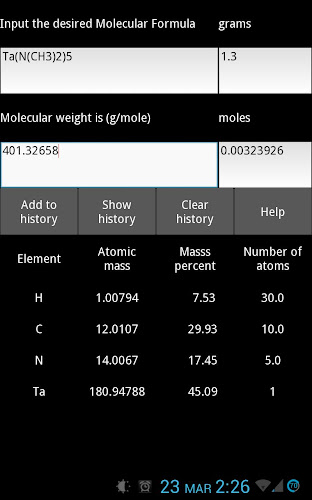 4. این برنامه همچنین به شما امکان می دهد فرمول مولکولی و/یا وزن مولکولی را در تاریخچه ذخیره کنید و در صورت نیاز به آنها دسترسی داشته باشید. بنابراین می توانید اساساً فهرستی از رایج ترین فرمول هایی که استفاده می کنید تهیه کنید.