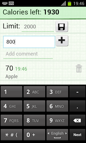 एप्लिकेशन जो आपके द्वारा दैनिक उपभोग करने वाली कैलोरी की संख्या पर नियंत्रण की अनुमति देता है।