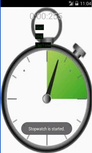 ovo je štoperica. koja će nam pokazati koliko je vremena proteklo od određenog vremena kada je aktivirana do kada je štoperica deaktivirana.u ovoj aplikaciji postoje tri gumba. prvo, gumb za pokretanje služi za pokretanje štoperice. drugi gumb je stop, zaustavit će štopericu. i posljednji gumb je prolazno vrijeme, pokazat će nam 5 prolaznih vremena.