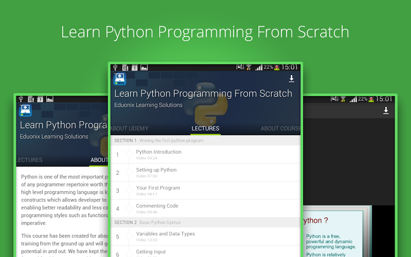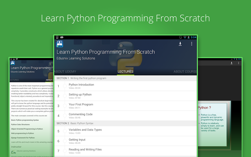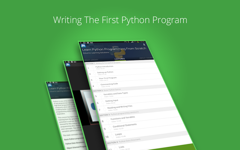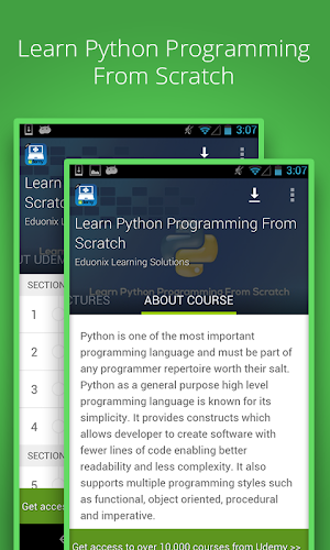 Android Alkalmazás Elemzése És Áttekintése: Learn Python Programming by Udemy, A Udemy Fejlesztése. Felsorolva A Oktatás Kategóriában. A Jelenlegi Verzió A 1.1, A 10/11/2017 -Es Frissítésű. A Felhasználói Vélemények Szerint A Google Play: Learn Python Programming by Udemy. Több Mint 1,000 Telepítés. A Learn Python Programming by Udemy Jelenleg 31 -As Értékeléssel Rendelkezik, Az Átlagos Minősítés 3.0 Csillag