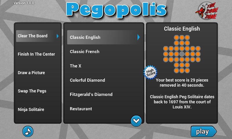 Permainan Peg-Jumping berlimpah, tetapi Anda tidak akan menemukan luas dan kedalaman teka-teki di game lain yang akan Anda temukan di Pegopolis. Ini termasuk 64 teka -teki berbeda yang tersebar di lima jenis teka -teki yang berbeda. Anda dapat memainkan permainan kasual 'Cobalah untuk membersihkan pasak sebanyak mungkin' atau permainan licik 'mencoba menggambar'. Bahkan ada game 'Ninja Solitaire' yang Anda mainkan secara terbalik untuk melemparkan kunci pas ke otak yang mencari pola Anda. Pegopolis adalah permainan desktop hit di tahun 1990 -an, dan sekarang kembali dan lebih baik dari sebelumnya!Apa Yang Baru